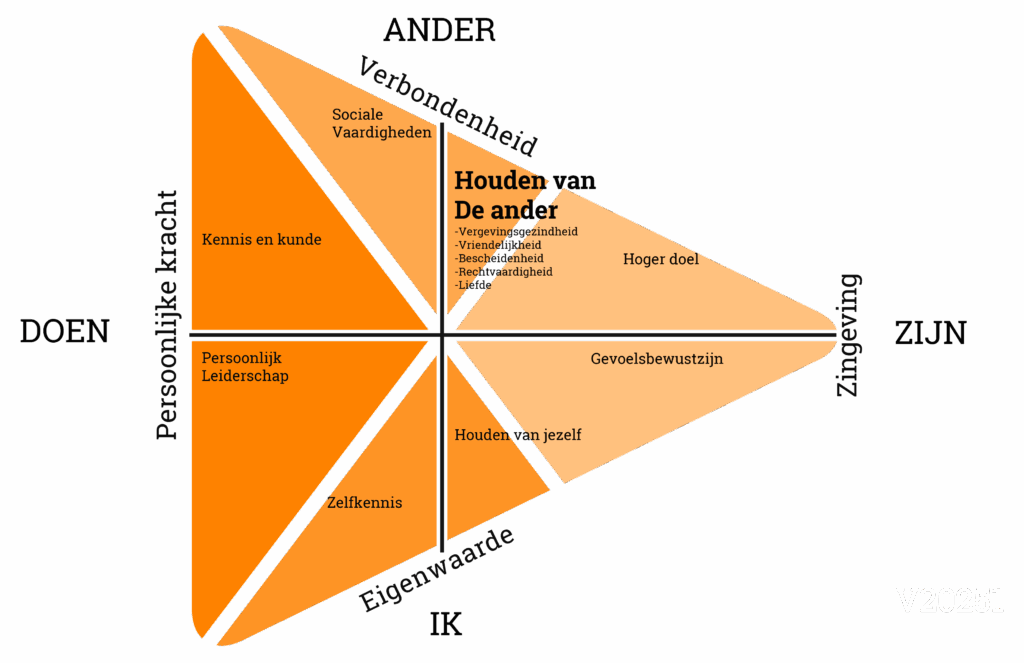 Het tegenovergestelde van houden van de ander is zelfgerichtheid. Zelfgerichtheid is een houding waarbij iemand voornamelijk op zichzelf gericht is en weinig liefdevolle betrokkenheid toont bij anderen. Dit uit zich in een gebrek aan oprechte zorg, compassie en acceptatie, waardoor de ruimte om liefdevol te geven en ontvangen wordt beperkt.