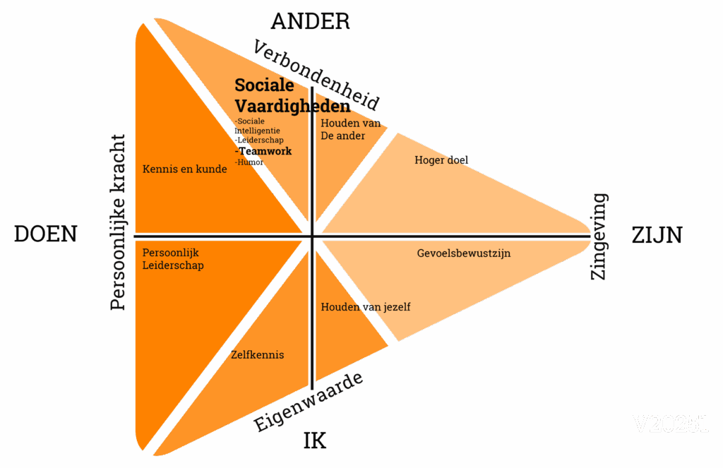In ons ontwikkelmodel zien we teamwork als onderdeel van ‘sociale vaardigheden’, naast sociale intelligentie, leiderschap en humor.